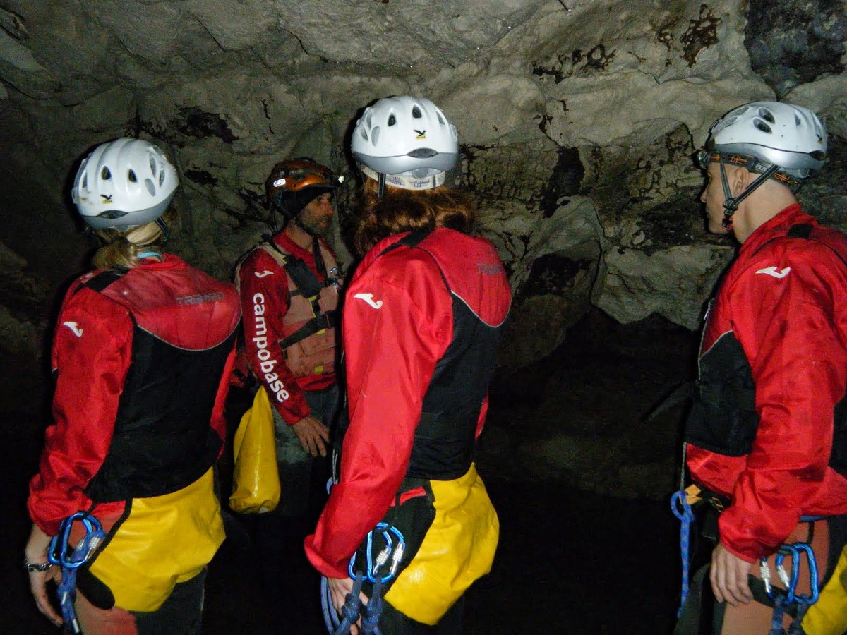Entrati nelle grotte avremo difficoltà a non sbattere la testa contro le stalattiti tanto saremo distratti a girare lo sguardo a 360 gradi su questi scenari spettacolari. Le concrezioni calcaree assumono sempre forme intriganti e fantasiose. Dopo qualche minuto di escursione ci si aprirà dinnanzi lo spettacolo di un fiume sotterraneo! Unico al mondo, il fiume Negro non è a carattere torrentizio, è perenne e sarà un’emozione ineguagliabile navigarlo fino all’antro preistorico che una volta veniva utilizzato per l’ingresso alla profonda cavità, qui sbarcheremo una prima volta per osservare le palificazioni ancora esistenti del villaggio preistorico. Imbarcati nuovamente, ci infileremo in un passaggio appena navigabile per trovarci difronte alla cascata del Paradiso, di qui a poco sbarcheremo per proseguire il nostro viaggio nelle grotte di Pertosa, un viaggio tutto in acqua tra sifoni e trappole rocciose, con passaggi in arrampicata e discese in corda, il tutto per la più grande esplorazione ipogea che avrete mai modo di fare.